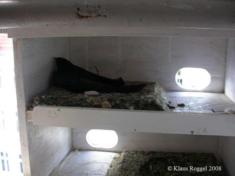 Der Nistkasten ist mit einer Klappe versehen und einsehbar.