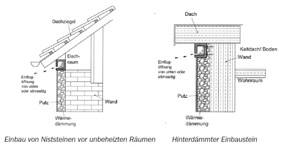 wird auf der Raumseite der Außenwand angebracht. An der Fassade ist nur das Einflugloch zu sehen. |