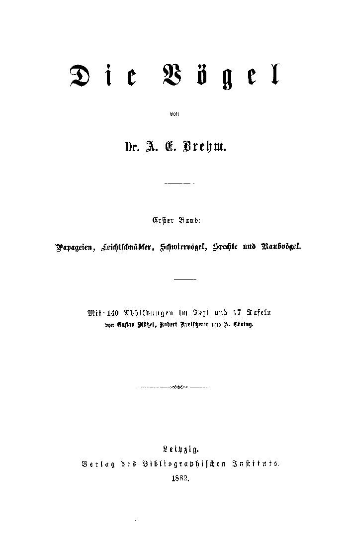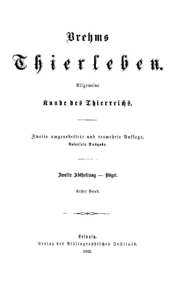 Deckblatt des 6. Bandes der Gesamtausgabe; Erster von 3 Bänden über Vögel