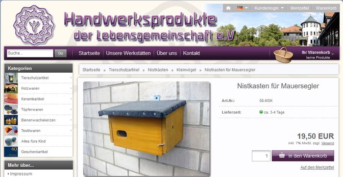 2b. Verkauf/Bestellung von Nistkästen: | ||||||||||