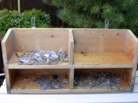 Erich Kaiser: zu 2. "Die dunkelbraunen Kügelchen sind Lausfliegenpuppen. Lausfliegen ernähren ihre Larven mit Seglerblut. Deshalb müssen sie diese austragen. Die Larve wird „geboren“ und verpuppt sich sofort. Diese Puppen liegen, wie sie richtig beobachtet haben, irgendwo im Nistkasten: den ganzen Sommer, den ganzen Winter, und wenn im Mai die Segler zurückkehren, schlüpfen sie und bereiten ihren Wirten einen warmen Empfang. Am besten saugt man die Nistkästen nach Abzug der Segler mit einem starken Staubsauger aus." zu 3. und 4. "... Auf keinen Fall die fertigen Nester entfernen! Wollen Sie den Seglern zumuten, jedes Jahr von vorn zu beginnen und dadurch künstlich Spätbruten verursachen? Seglernester werden immer wieder benutzt und weiter ausgebaut. Allenfalls können Sie Nester mit zu flachem Rand durch perfekte Kunstnester ersetzen." |