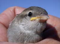 Es war mir sofort klar: Ein Jungspatz - gerade flügge geworden - machte
