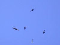 Am Abend des 25. April um 19.25 h sah ich die ersten Mauersegler über Berlins Dächern kreisen. Sie flogen in Höhen zwischen 150 und 200 Metern. Zunächst sah ich nur zwei. Später kamen noch einige hinzu. Um 19.50 h waren es dann 8. Die