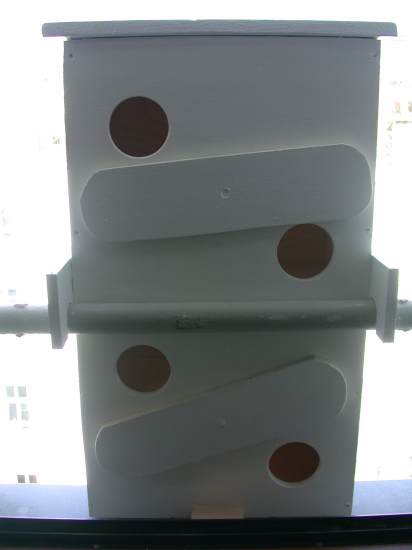 durch Löcher in der Rückseite Durch Drehen der Holzleiste um eine Mittelachse können die Öffnungen auf einfache Weise verschlossen oder geöffnet werden. |