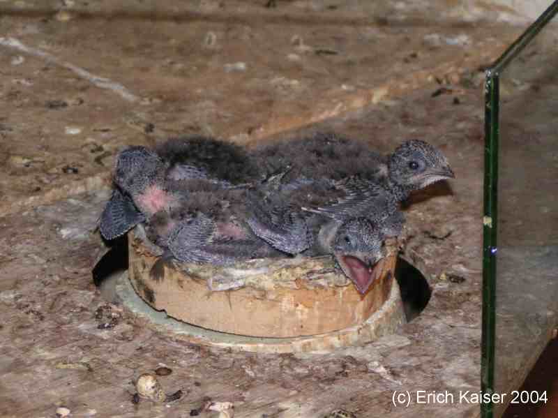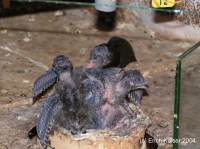 08. Juni 2004. Nun beginnen sie langsam wie Vögel auszusehen. Das Flügelgefieder wächst nach jedem Tag deutlich.