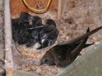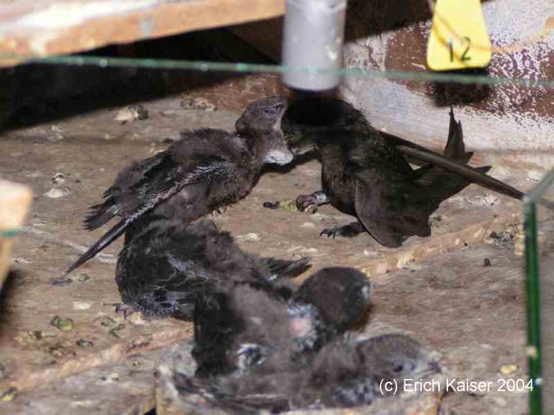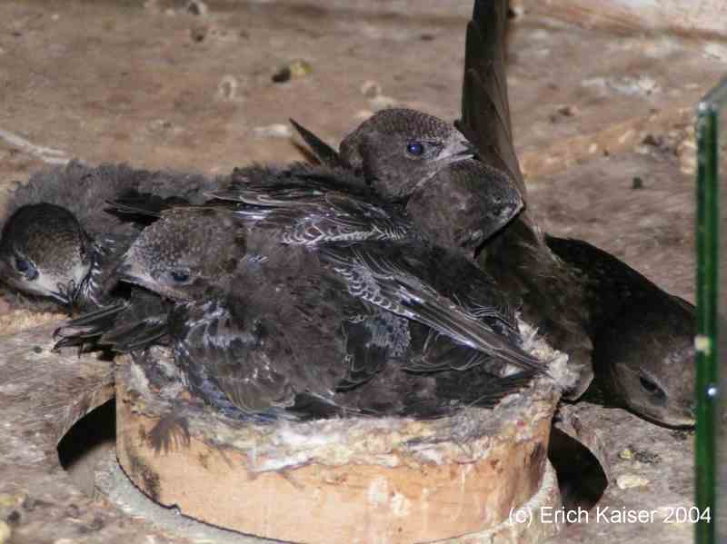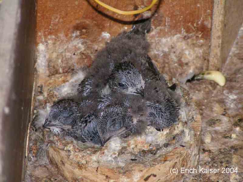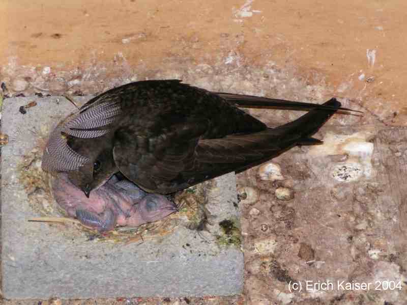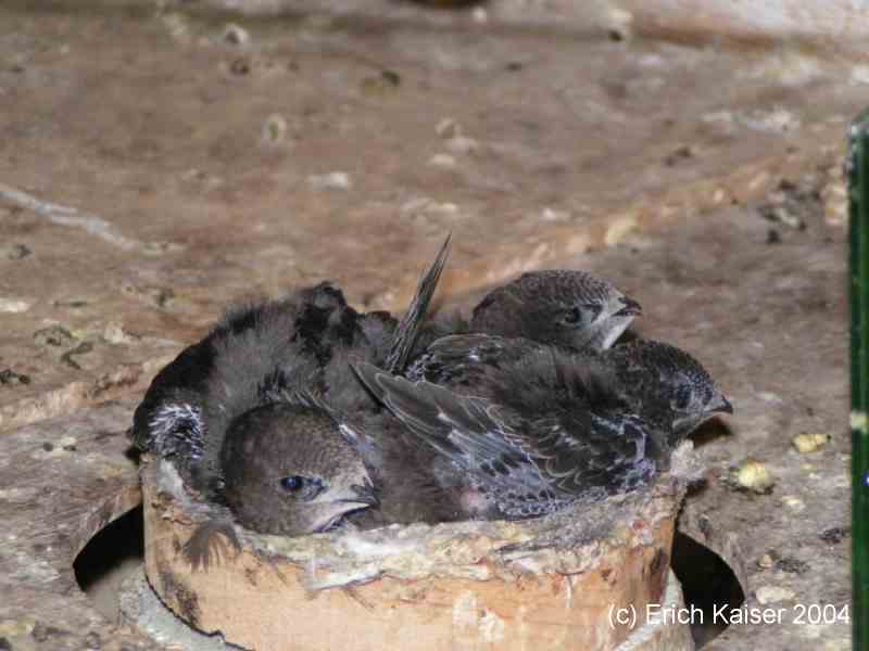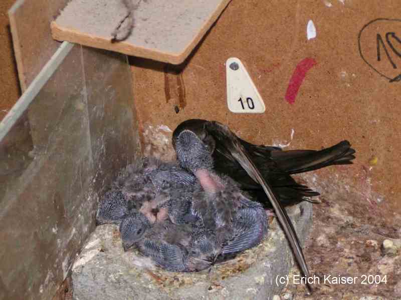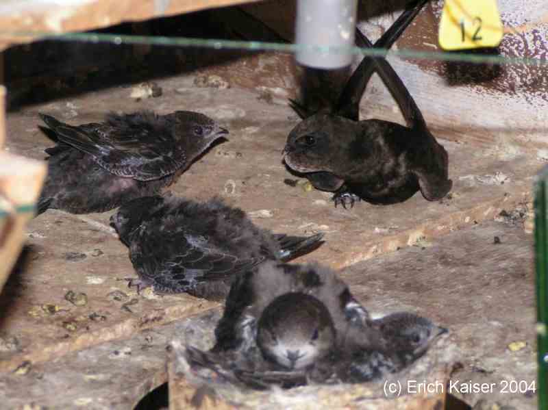 Eine quieklebendige Seglerfamilie. Ein Junges fehlt. Es ist wohl wieder auf Wanderschaft im Nistraum. Box 15 E-Mail Erich Kaiser [kaiserapus@t-online.de] |