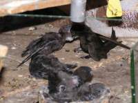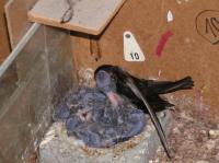Hier sieht man einen der Altvögel mit Nahrungsbrei angefülltem Kropf. Box 12