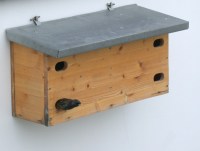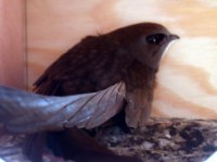 Ein Mauersegler ruht sich in der Nisthöhle aus. | ||||