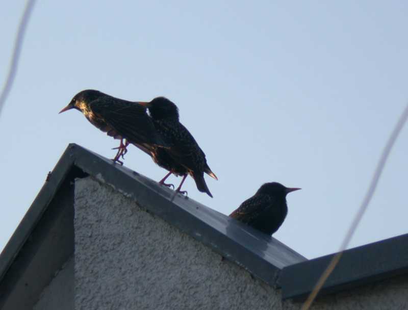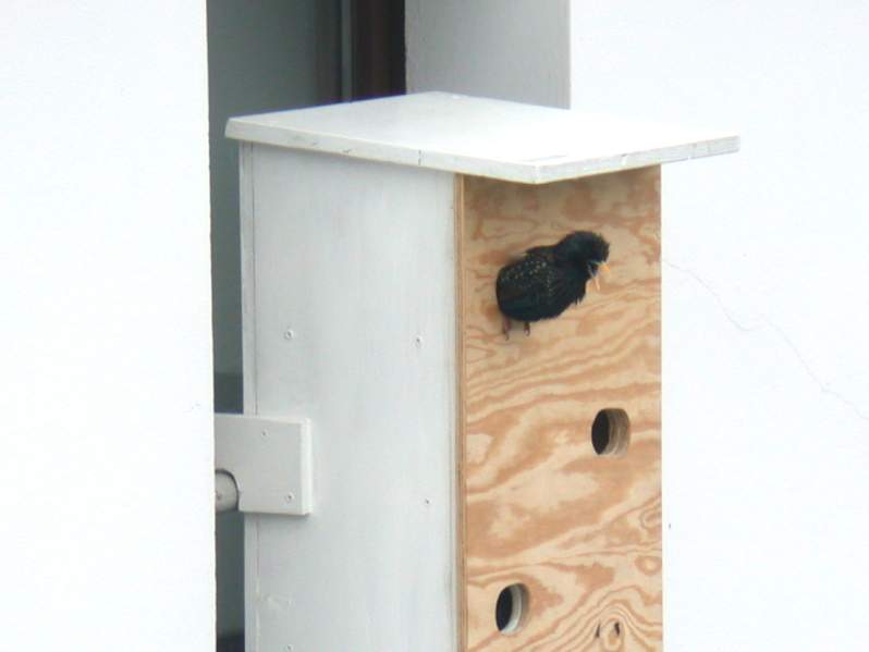 Der Star ist zwar sehr geschickt und wendig, aber beim Abflug hat er sichtbar Mühe sich durch das enge Loch im Nistkasten (1) zu zwängen. Übrigens hat das Spatzenpaar dieses Jahr keine Anstalten gemacht, den Seglern die Nester zu bauen. Es siedelt wieder am gewohnten Platz hinter dem Regenfallrohr.
