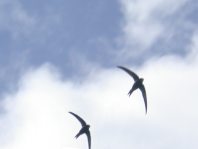 Jetzt kommen sie immer näher und tiefer zu uns herunter. Heute kann man ihnen besonders gut zuschauen, wie sie zu zweit ihre rasanten Flugspiele aufführen. Es muß ihnen einfach Spass machen! |