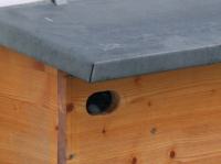 Jahr aufgestellte Kasten befindet sich vorn auf dem Dachüberstand der