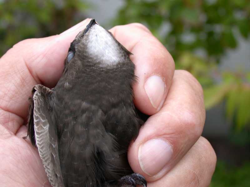 Dieser Segler ist durch die offene Terrassentür in die Wohnung geflogen. Nach dem Fototermin wurde er flugs wieder in die Freiheit entlassen. |