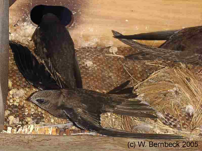 Lieber Herr Roggel, zuerst herzlichen Glückwunsch zu ihrer gelungenen Homepage. Ich bin immer wieder gerne bei ihnen zu Gast und schaue mir die neuen Fotos in ihrer Galerie an. Im Zuge unserer Umbauarbeiten am Haus verloren vor zwei Jahren einige Mauerseglerpaare ihre Wohnung. Gott sei Dank waren die Jungvögel schon ausgeflogen. Wir haben dann für das nächste Jahr einen Nistkasten für zwei Paare gebaut. Leider zu wenig, denn als die Vögel im Jahr darauf zurückgekommen sind, fehlten insgesamt zwei Nistplätze. Sie können sich nicht vorstellen wie außer sich die Segler waren. Sie konnten es gar nicht glauben, dass sie ihre Nistplätze nicht wieder fanden. Wir haben es leider nicht mehr geschafft während der ganzen Hausumbauerei weitere Nistkästen zu bauen. Also hat nur ein Paar gebrütet. Mit dem Bruterfolg dürfte es aber schlecht ausgesehen haben. Mir sind keine Jungvögel aufgefallen. Heuer haben wir die Nistkästen auf 6 aufgestockt und auf die Vögel gewartet. Am 2. Mai waren sie dann wieder da. Dieses Mal kamen 3 zurück. Das alte Paar hat sofort seinen Nistkasten wieder bezogen, der Einzelvogel ist nach wie vor alleine und sucht Anschluss. Zuerst dachte ich, wir hätten mit unserem Dachumbau den gesamten Mauerseglerbestand des Ortes gefährdet. An lauen Abenden fliegen aber Gott sei Dank wieder 8 10 Vögel in der Nähe unseres Hauses. Ich hoffe, dass sich unser Bestand bald wieder erholt. Ich kann mich nichts Schöneres vorstellen, als ihre Flugkünste zu bewundern und ihren Jungen beim Trainieren zuzusehen. Dann ist nämlich erst Sommer!