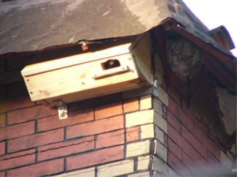 Mauersegler verzweifelt in einen Starenkasten einzufliegen, dieser hatte